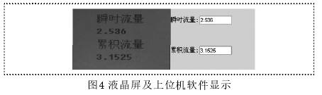 该程序主要用于实时更新流量信息,微处理器与上位机通过RS232接口以modbus协议进行通信。*后,该设计液晶屏上所显示的流量信息与上位机软件所显示的数据如图4所示。